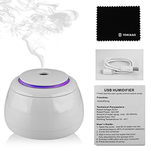 Mini Umidificatore USB, YOKKAO Umidificatore ad Ultrasuoni Purificatore Ambiente Portatile Multifunzioni per Ufficio/ Casa/ Camera di Yoga/ Camera da Letto/ SPA