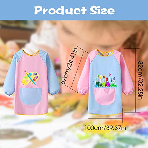 UMILKI 2 Pezzi Grembiule da Pittura o Cottura, Impermeabili Grembiulino Maniche Lunghe Bambini 5-12 Anni con Tasche,