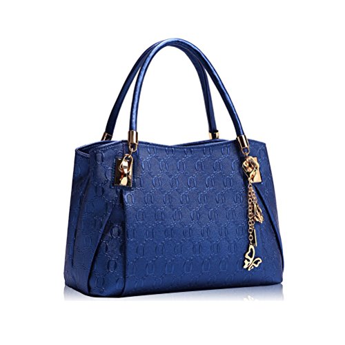 Umily Le donne annata della borsa del cuoio del sacchetto di spalla del Tote della cartella Hobo Set 3PCS-Blu
