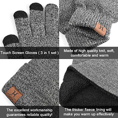 UMIPUBO Cappelli Invernali Uomo Cappelli da Uomo Invernali Sciarpa Uomo Guanti Invernali Guanti Touch Screen (Grigio scuro)