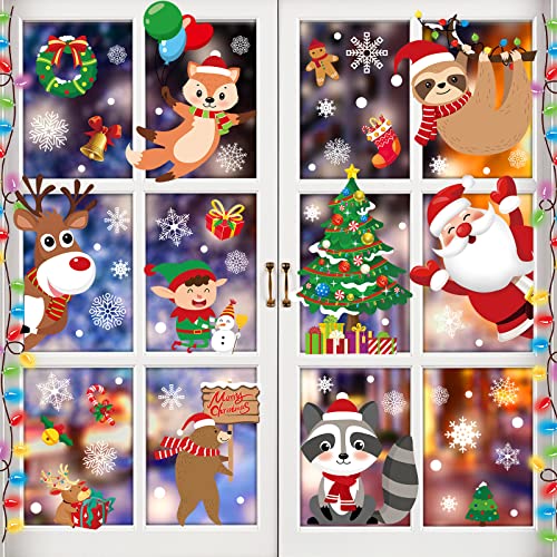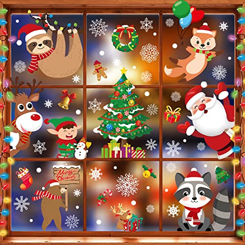 UMIPUBO Natale Vetrofanie 10 fogli PVC Natale Adesivi per Finestre Addobbi Decorazione Rimovibile Adesivi Vetro Porta Murali Babbo Renna Fiocchi di neve Fai da te Finestra Natalizi Sticker (172 Pz)