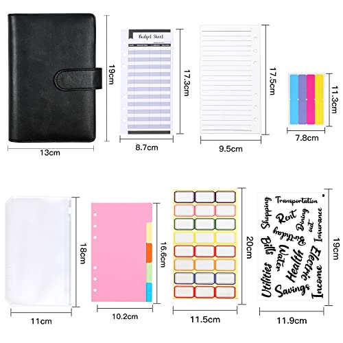 Umitive Raccoglitore A6 Anelli, 62Pcs Pelle PU Budget Planner con 12 Buste, Foglio di bilancio e Adesivi fai da te per Budget di Contanti Organizzatore di Buste Risparmio di Denaro (Nero)