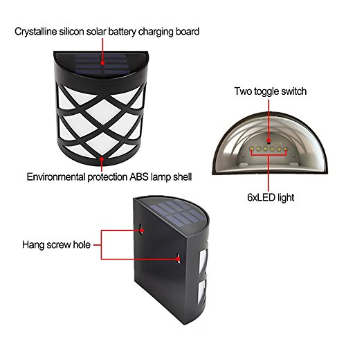 Impermeabili: queste lampade a energia solare sono progettate per uso in ambienti esterni, sono in grado di resistere a pioggia e altre condizioni meteorologiche avverse.La struttura è durevole e anticorrosione, non dovrete preoccuparvi di eventuali danni.