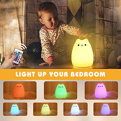 Umiwe telecomando Gatto Lampada, Kitty silicone sveglio luce di notte per i bambini della scuola materna del regalo di compleanno del bambino Bambini