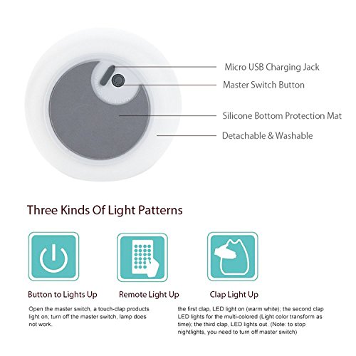 Telecomando & Tap Control: toccare la superficie morbida del silicone per accendere il colore o utilizzare il telecomando per accendere / spegnere, cambiare i modelli di luce, regolare la luminosità. (Distanza dal telecomando di 5 metri)