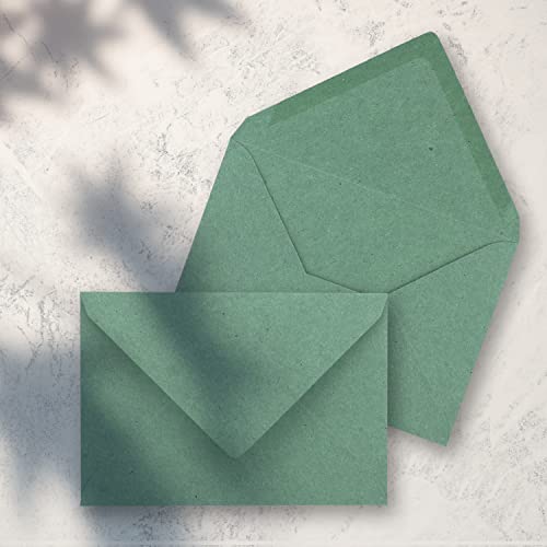 UmWelt by GUSTAV NEUSER - 50 buste per lettere, stile vintage, formato DIN B6, 125 x 178 mm, carta kraft da 120 g/m² riciclata, con lembo a punta da inumidire, colore: eucalipto (verde)
