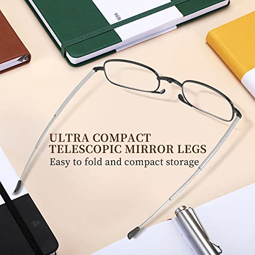 Umwhcw 1 paio di occhiali da lettura compatti pieghevoli con mini per il trasporto per uomini e donne occhiali rotanti + 2,0 nero