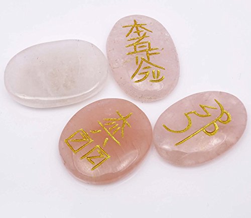 Unakite forma ovale, 4 pezzi Set Reiki simbolo tabella energetica spirituale Decor Rose (Rose Quartz)