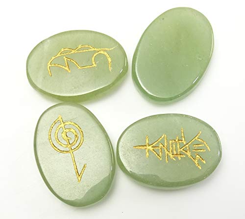 Unakite forma ovale, 4 pezzi Set Reiki simbolo tabella energetica spirituale Decor Vert (Aventurine) -5