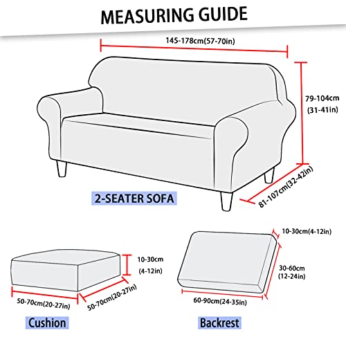 2. DIMENSIONE DIVANO 5 PCS: 1 fodera per divano (lunghezza 145-178 cm), 1 fodera per schienale a sinistra (lunghezza 60-90 cm, larghezza 30-60 cm, spessore 10-30 cm), 1 fodera per schienale a destra (lunghezza 60-90 cm, larghezza 30-60 cm, spessore 10-30 cm), 2 pezzi di fodera per cuscino a 1 posto (lunghezza 50-70 cm, larghezza 50-70 cm, spessore 10-30 cm). Per maggiori dettagli, consultare la guida nell'immagine.