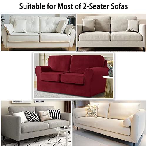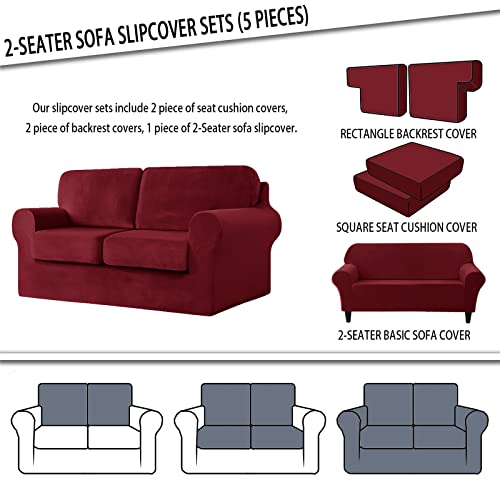 UNBBRRL Copridivano A 2 Posti Con 2 Schienali E 2 Copricuscini Separati Copridivano Antiscivolo Copridivano A 5 Pezzi (Borgogna)