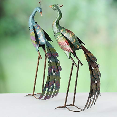 Unbekannt Accessori, Decorazione per Interni o Esterni - Set di 2 Statue assortite - Motivo: Pavone - Metallo - ca H78 cm