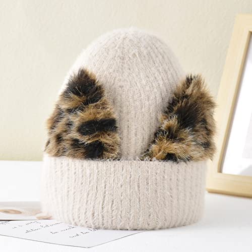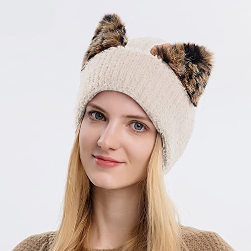 Unbekannt Berretto da donna in lana leopardato, cappello a orecchie di gatto, berretto elastico lavorato a maglia, berretto freddo, berretto da sci, caldo berretto da uomo, beige., Taglia unica