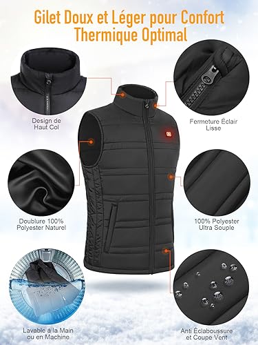 UNBON Gilet Riscaldato Uomo, Giubbotto Riscaldato Uomo con Batteria Inclusa 14400mAh Elettrico Giacca Riscaldata Elettrica Riscaldante con 6 Zone di Riscaldamento 3 Livelli di Temperatura - Nero M