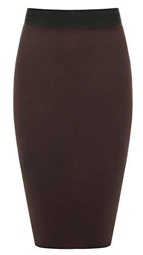 Unbranded - Gonna a matita da donna, tinta unita, aderente in jersey elasticizzato, taglia 30-56 Marrone 56-58