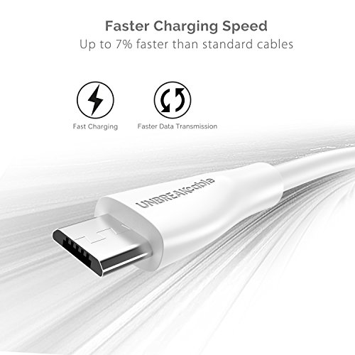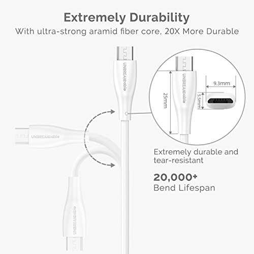UNBREAKcable Cavo Micro USB [1M/3.3ft] Cavo USB ultra resistente per Samsung Galaxy S7 Edge/S7/S6 Edge/S6, Note 6/5, Huawei Mate 8/7, Sony, HTC, Kindle, Dispositivi Android, Smartphone ecc. - Bianco