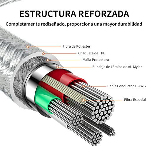 【Robusto nylon intrecciato】Il cavo di ricarica Lightning UNBREAKcable con eccezionale resistenza alla trazione è assicurato da un nucleo in fibra aramide ad alte prestazioni ed estremamente resistente, avvolto in un doppio rivestimento di nylon intrecciato, che porta a un cavo flessibile ma robusto con un'eccellente resistenza. Il cavo per iPhone può sopportare carichi fino a 50 kg ed è stato piegato a 95 gradi per il test.