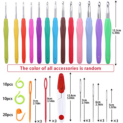 Set di uncinetti da 77 pezzi, uncinetti ergonomici in alluminio con ferri da maglia, ferri smussati a occhi grandi, ferri da uncinetto colorati, segnapunti in plastica e custodia