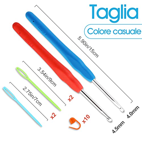 Uncinetto da 4mm & 4.5mm, Confezione da 2 Uncinetti in Alluminio Con Impugnatura Morbida in Gomma, Set di Uncinetti Con Impugnatura Ergonomica, Uncinetti Per Principianti ed Esperti Amanti Degli