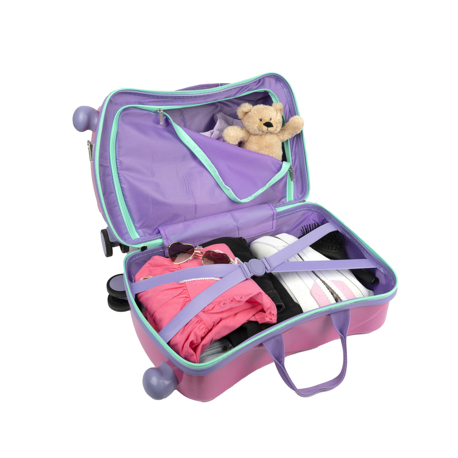 Dettagli del prodotto: Età: da 3 anni Il carrello cavalcabile Gabby's Dollhouse promette più divertimento ai bambini e ai genitori in viaggio. Con la valigia per bambini, i bambini hanno sempre con sé il loro seggiolino alla stazione o all'aeroporto e possono riposare (fino a max. 50 kg) Le lunghe distanze o i tempi di attesa possono essere colmati con la funzione scivolo I genitori possono anche tirare comodamente la valigia con il loro bambino usando la cinghia Grazie alle due ruote a 360°, il trolley è particolarmente flessibile e il divertimento di scorrimento su tutti i lati è garantito. Il trolley offre anche molto spazio per bagagli e giocattoli Tutti gli oggetti da viaggio sono ben organizzati grazie alla pratica disposizione con scomparto con cerniera e cinghie incrociate Il trolley può essere trasportato come bagaglio a mano su molte compagnie aeree Il trolley Ride On con motivo Gabby's Dollhouse è un prodotto con licenza Original Dimensioni e peso: Dimensioni da assemblato (lunghezza x larghezza x altezza): 47,5 x 32 x 23 cm Peso: circa 1,7 kg Materiale e cura: Materiale: policarbonato Avvertenze e istruzioni di sicurezza: Attenzione: non superare il peso massimo di 50 kg per la funzione di seduta.