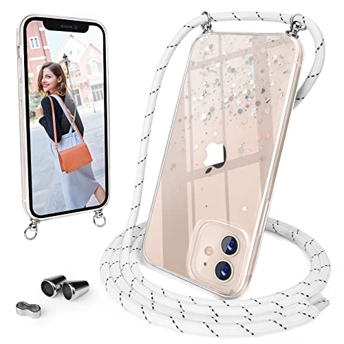 UNDEUX Cover con Cordino per iPhone 12/iPhone 12 Pro, Custodia con Laccio Collana Tracolla Regolabile con Glitter in Silicone Antigraffio per iPhone 12/12 Pro (6.1") - Trasparente