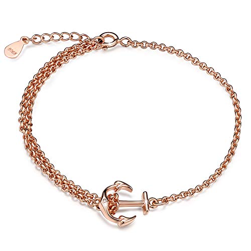 Unendlich U, bracciale da donna e ragazza, in argento Sterling 925, con ciondolo a forma di ancora regolabile, con doppia catena