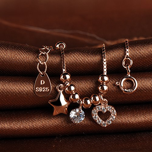 Unendlich U Fashion - Bracciale da donna con ciondolo a forma di cuore, in argento Sterling 925, con zirconi, regolabile, oro rosa