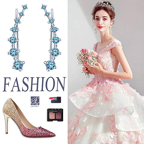 Unendlich U - Orecchini da donna alla moda, in argento Sterling 925, con 7 cristalli, ipoallergenici, rotondi, con zirconi cubici, fascetta da orecchio e Argento, colore: Blu, cod. E5595-blue