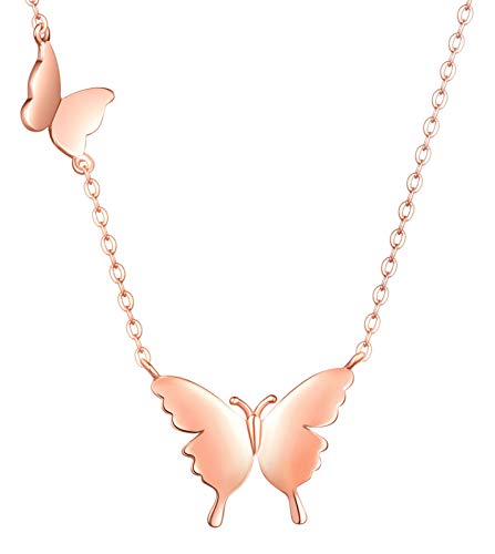 Unendlich U-Ciondolo temperamento moda serie farfalla Collane in argento sterling S925 Collane donna clavicola leggera e lussuosa, colore: argento/oro rosa