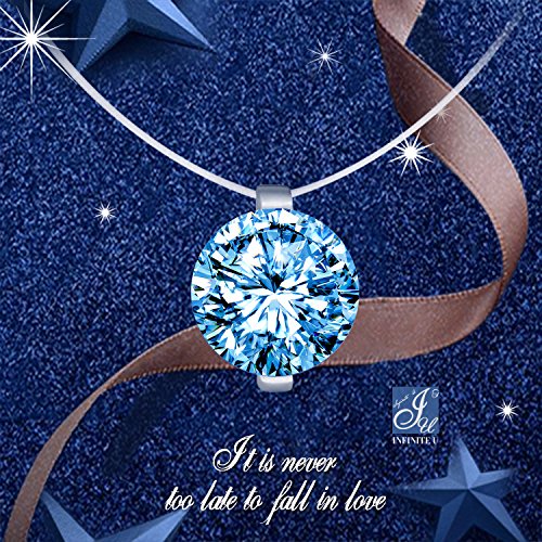 Unendlich U-Collana da donna con un singolo zircone e filo di nylon trasparente colore squisito ed elegante: blu