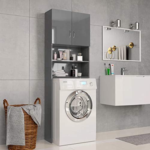 UnfadeMemory Mobile per Lavatrice Mobile da Bagno Grigio Lucido 64x25,5x190 cm in Truciolato