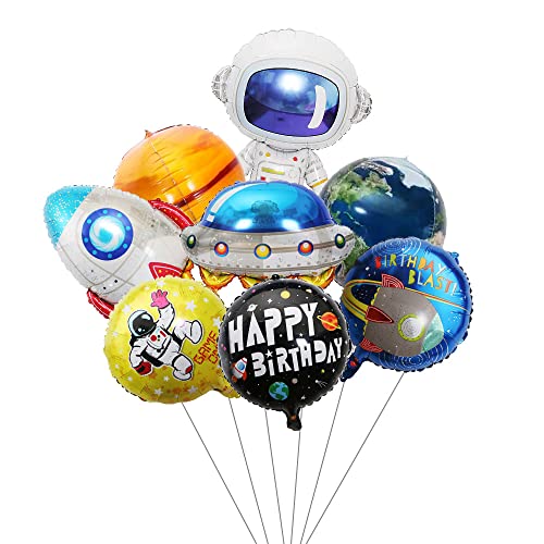 Ungfu Mall Set di palloncini spaziali con razzo, astronaute, barca spaziale a elio, palloncini in pellicola, Happy Birthday, decorazione per feste di compleanno per bambini e ragazzi