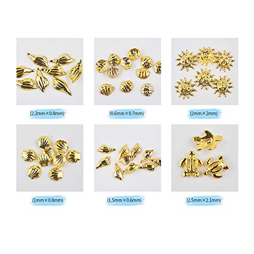 Unghie Borchie 12 Griglie Tartaruga Rivetto Mare Stella Conchiglia Misto Decorazione 3D Accessori Lega Conchiglia Arte Attrezzo Manicure (Argento) - Dorato