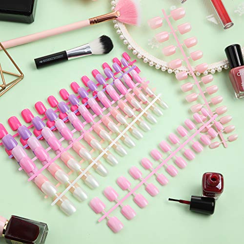 192 Unghie Finte Artificiali Corte Colorate Quadrate Bara da Premere Unghie Copertura Completa Unghie Acriliche Artificiali Copertura di UV Rosa di Tramonto da 8 Set (Multicolori)