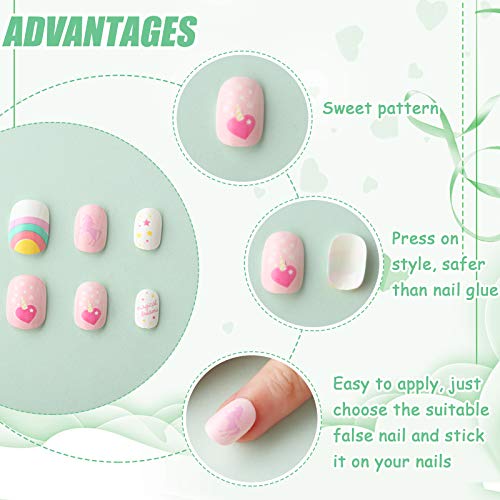 72 Unghie Finte per Bambini Punta per Unghie Artificiali da Premere Kit Unghie Finte Corte a Copertura Completa per Ragazza Manicure, 3 Scatole (Tema Arcobaleno)