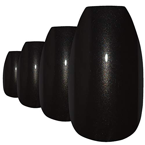 Unghie finte Bling Art Nero Perlato Ballerina Bara 24 Lunghe Finte punte in acrilico con colla