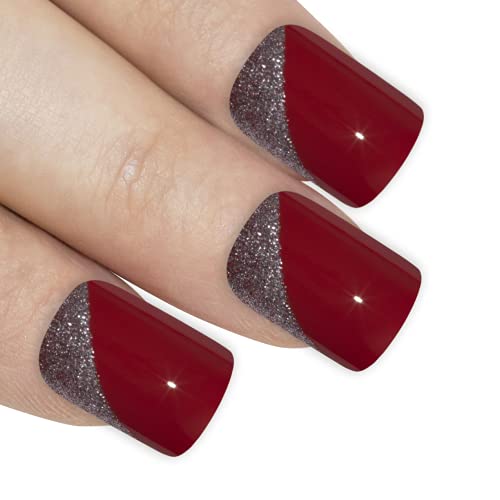 Unghie finte Bling Art 24 Rosso Cristallo Squoval Medio Finte punte in acrilico con colla