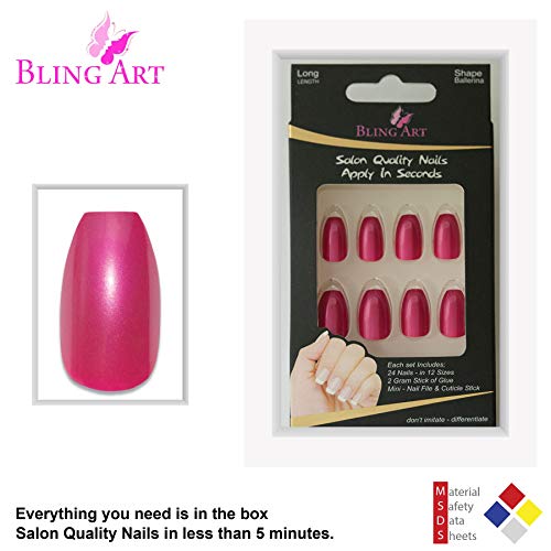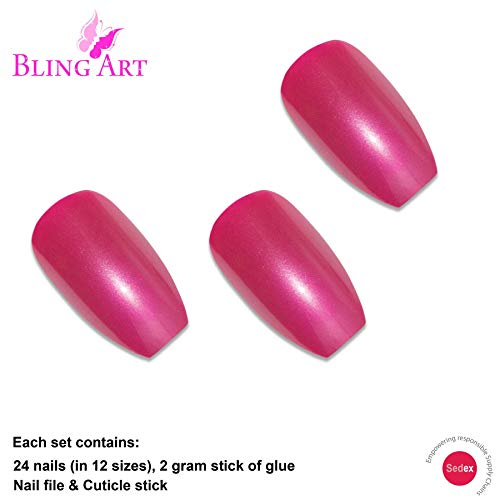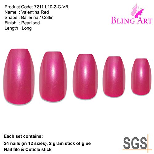 Unghie finte Bling Art Rosso Perlato Ballerina Bara 24 Lunghe Finte punte in acrilico con colla