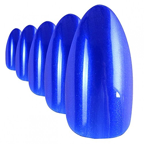 Unghie finte Bling Art Stiletto Blu Perlato 24 Mandorla Lunghe punte in acrilico con colla