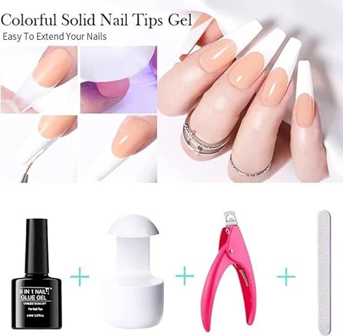 Kit per Unghie Finte e colla gel, 500 pezzi Unghie in Gel Tips con Gel per Colla 6-in-1, Set di gel rinforzante per unghie trasparente con lampada LED per salone di bellezza o uso domestico