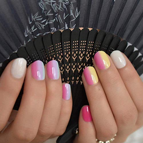 DCJ Unghie finte Unghie finte Corte Piccole per Bambini Arcobaleno Lucido Rotondo colorato Stile Carnevale finte ongles per Unghie Piccole