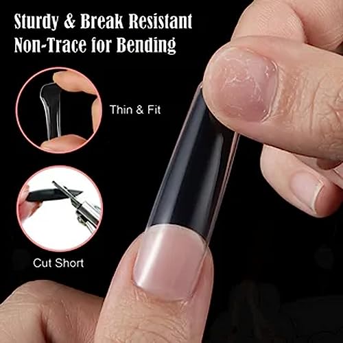DEZ Xxxl Unghie Finte Extra Lunghe, 240 Pezzi Punte Per Unghie Finte Dritte Quadrate Trasparenti Per Tip In Gel, 12 Misure Punte Per Unghie A Pressione A Copertura,240 Pezzi Adesivi Per Unghie