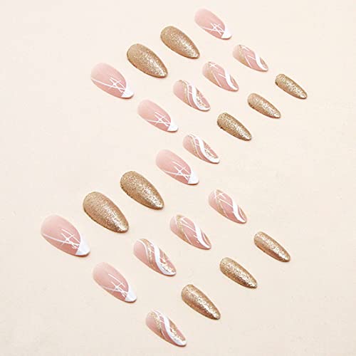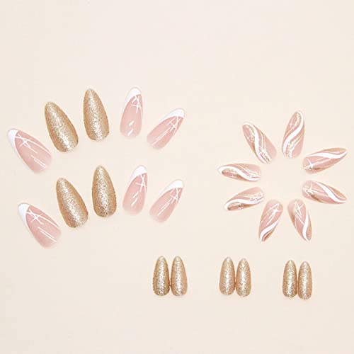 24 PCS Unghie finte media lunghezza Unghie finte mandorla Unghie finte rosa bianche Unghie finte stella Unghie finte vortice Unghie finte linea Unghie finte regalare a donne e ragazze Regali di festa