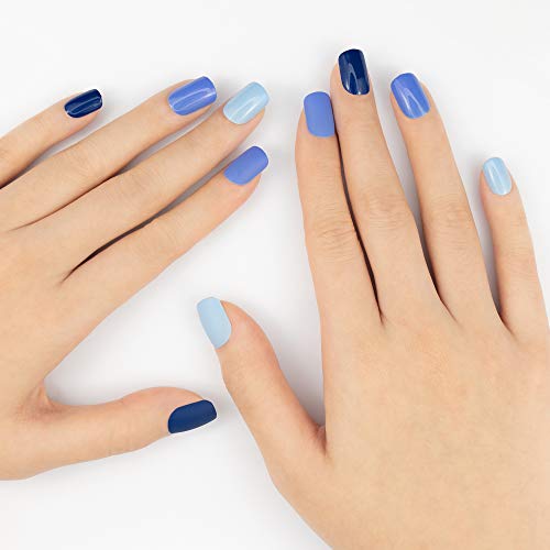 MUSE & Co - Set di 4 unghie finte in gel, 36 pezzi, lunghezza media, colore: Blu opaco