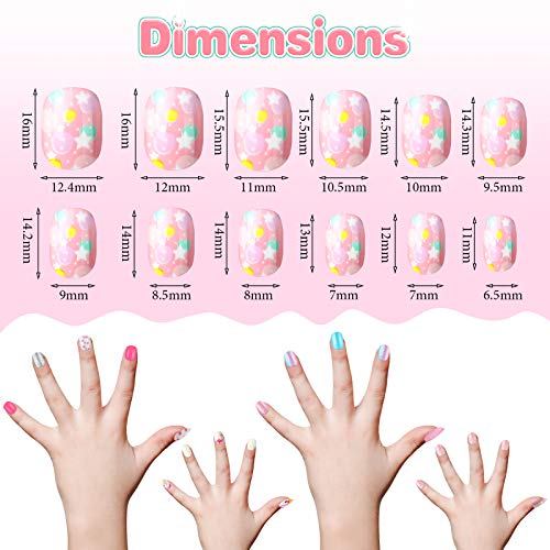 12 Tailles différentes: chaque boîte de faux ongles contient 12 tailles différentes, ce qui convient à la taille des ongles de la plupart des enfants, il y a toujours une taille adaptée à vos filles, peut être appliquée comme cadeau pour envoyer votre fille, vos sœurs et plus encore, sera leur remonter le moral