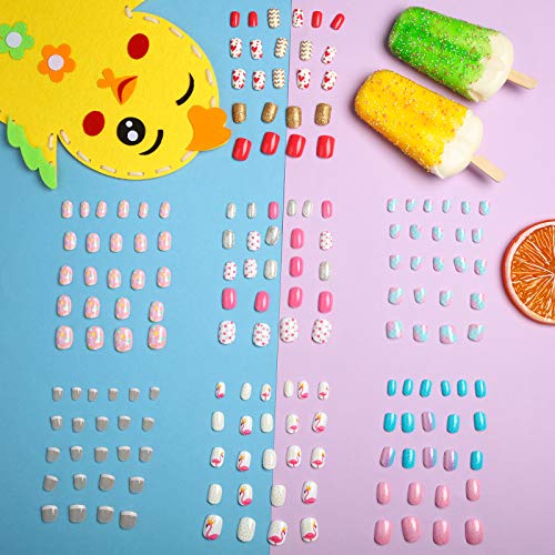 168 Unghie Finte da Premere per Ragazze Unghie Finte Artificiale di 7 Giorni Unghie Finte Corte a Copertura Totale per Bambini per Regalo Manicure, 7 Scatole (Fenicottero e Sfumatura)