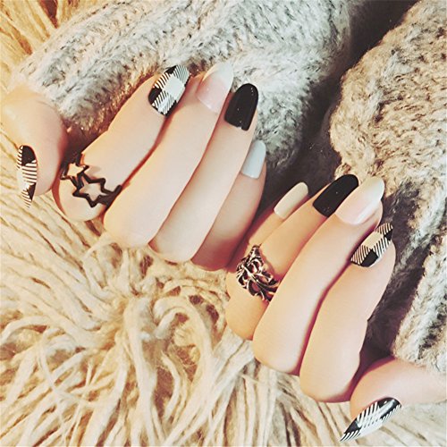 Unghie Finte,Unghie E Punte Per Unghie Black White Grids Pattern Unghie Finte Artificiali PeRFect Length Cover Completa Beauty Art Decoration Manicure Pedicure Per Le Donne Teens Girls