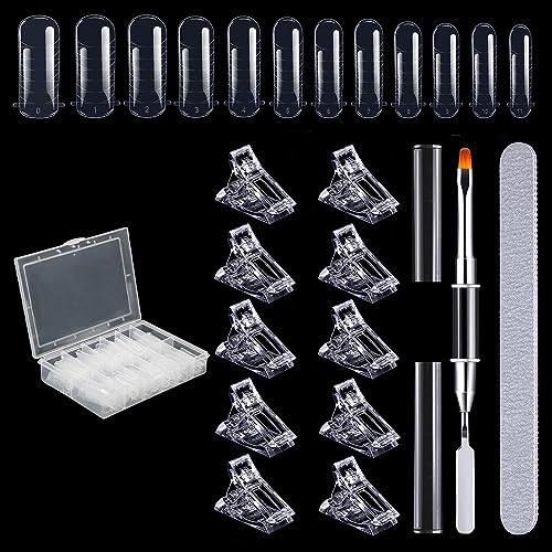 Forme Per Unghie Doppi - Il set di extension per unghie contiene 120 tips per unghie, 10 clip in polygel, 1 pennello a doppia estremità per nail art e 1 lima per unghie. Soddisfa la vostra esigenza di realizzare nail art.