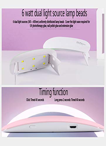 DXIA Led Unghie Lampada UV Unghie, 6W Lampada UV Led Unghie per Gel, Ricostruzione Unghie, Mini Lampada Unghie, Asciuga Smalto Gel Unghie, Lampada Portatile, 2 Timer Preimpostati (45s, 60s)