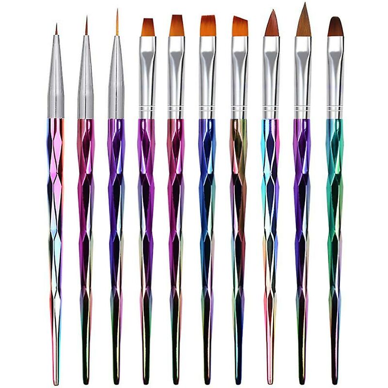 Set di 10 pennelli per unghie, pennello da disegno per nail art per gel UV e unghie acriliche Caratteristiche: Non solo per l'uso delle unghie ma anche per gli occhi, la custodia del telefono, l'abbigliamento, la decorazione della casa, il salone di bellezza e la body art. Facile da maneggiare e da usare, uno strumento perfetto o un regalo per chi ama il design delle unghie. Colore: come mostra l'immagine. Materiale: manico in metallo, punta della spazzola in nylon La confezione include: 10 pezzi x set di spazzole per unghie
